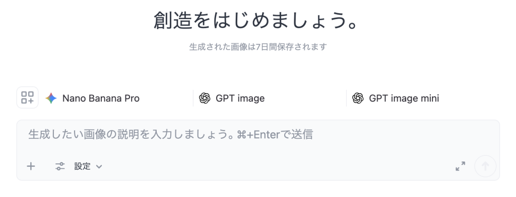 すると画像生成専用のチャット欄が出てきます。(画像生成の場合同時に使えるAIは3つまで)